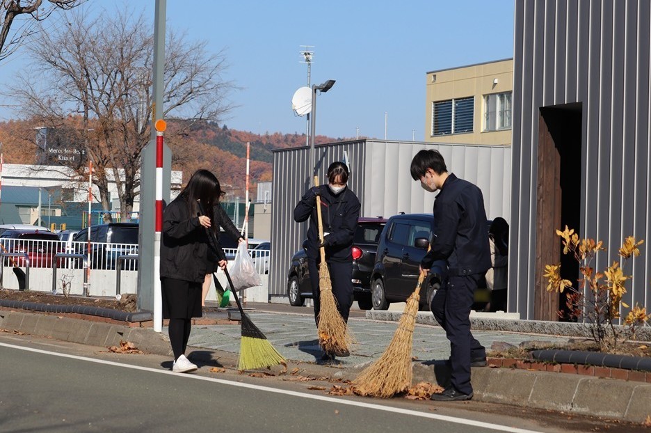 2025年10月31日、地域社会への貢献活動の一環として、社員一同で会社周辺の枯れ葉清掃を実施いたしました。