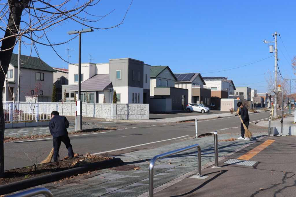 秋が深まり、道路や歩道には落ち葉が積もり、通行の妨げや滑りやすさの原因となることから、地域の安全と美観維持を目的に清掃活動を実施いたしました。社員全員が協力し、丁寧に落ち葉を集め、清掃後はすっきりとした景観が広がりました。